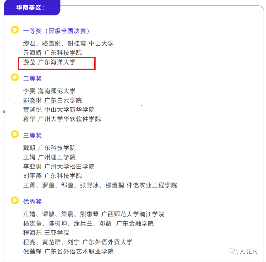 近日,在首届全国翻译技术教学大赛上,太阳集团122cc教师游莹荣获华南赛区一等奖。大赛在全国翻译专业学位研究生教育指导委员会、世界翻译教育联盟(WITTA)的指导下,由世界翻译教育联盟翻译技术教育研究会(WITTA TTES)与广东外语外贸大学高翻公司翻译技术教育与研究中心联合主办。此次大赛共分为七个赛区,每个赛区有3-5名业内专家组成评委组进行评审。评委名单提交大赛学术委员会审核同意后,分赛区评委组对各自赛区的作品全程进行匿名评审,最后取评委组的平均成绩进行组内排名,成绩提交全国组委会。全国组委会核对无误后,加入个人选手信息,按照大赛规定的奖项比例产生最终获奖名单。