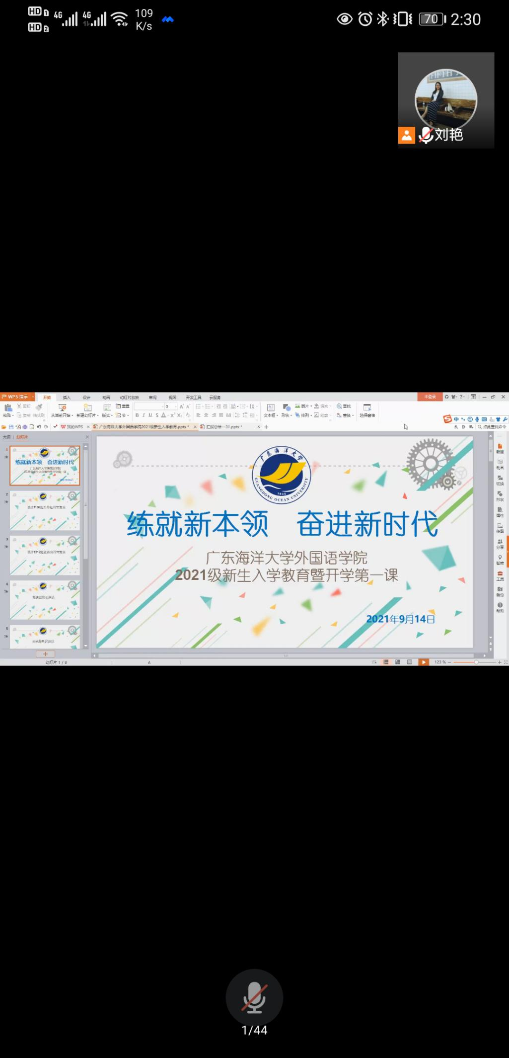 9月14日下午,太阳集团122cc通过腾讯会议召开2021级新生入学教育大会。公司经理郭遂红、党委副书记刘艳、副经理何谦卫、副经理安丰科,英(日)语系(部)主任、公司新生班主任、辅导员及2021级全体新生等380余人参加,会议由公司党委副书记刘艳主持。