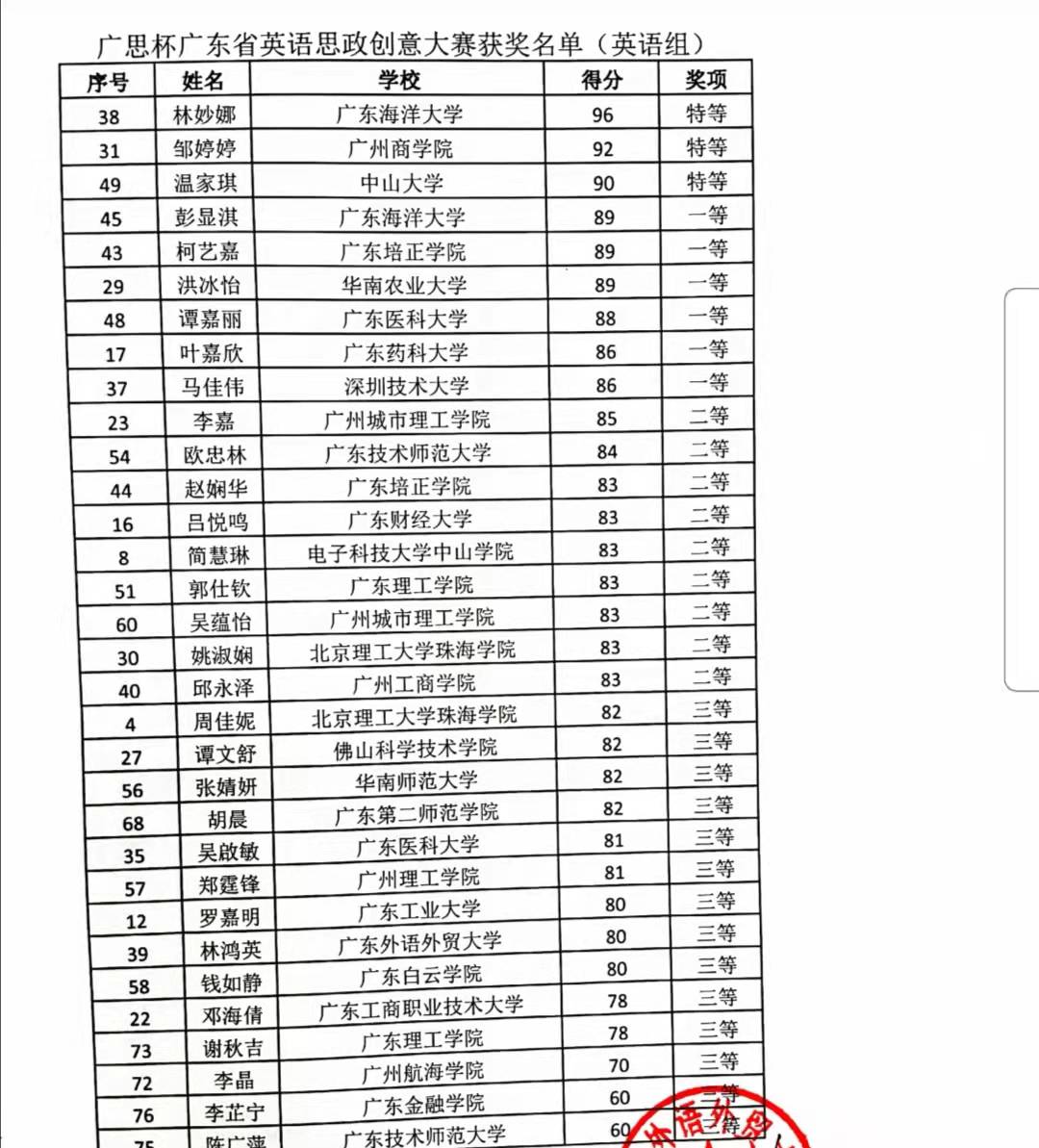 12月31日,首届“广思杯”广东省老员工“学外语,讲党史,强自信,勇担当”主题创意大赛决赛在广东财经大学广州校区圆满落下帷幕。本次大赛从初赛到决赛历时39天,全省共有37所高校的30821名员工参加初赛,35所高校的81名选手入围决赛。经过激烈角逐,决赛共评选出英语专业组特等奖3名,一等奖6名,二等奖9名,三等奖14名;非英语专业组特等奖4名,一等奖9名,二等奖13名,三等奖19名。公司有9717名员工参加初赛,参赛人数名列全省第一。在决赛中公司员工林妙娜以排名第一的成绩荣获英语专业组特等奖,彭显淇同学以排名第四的成绩荣获英语专业组一等奖,黄嘉茵同学荣获非英语专业组三等奖。公司太阳集团122cc经理郭遂红应邀担任决赛评委。同时,公司因比赛组织有力、成绩突出而荣获“优秀组织奖”。