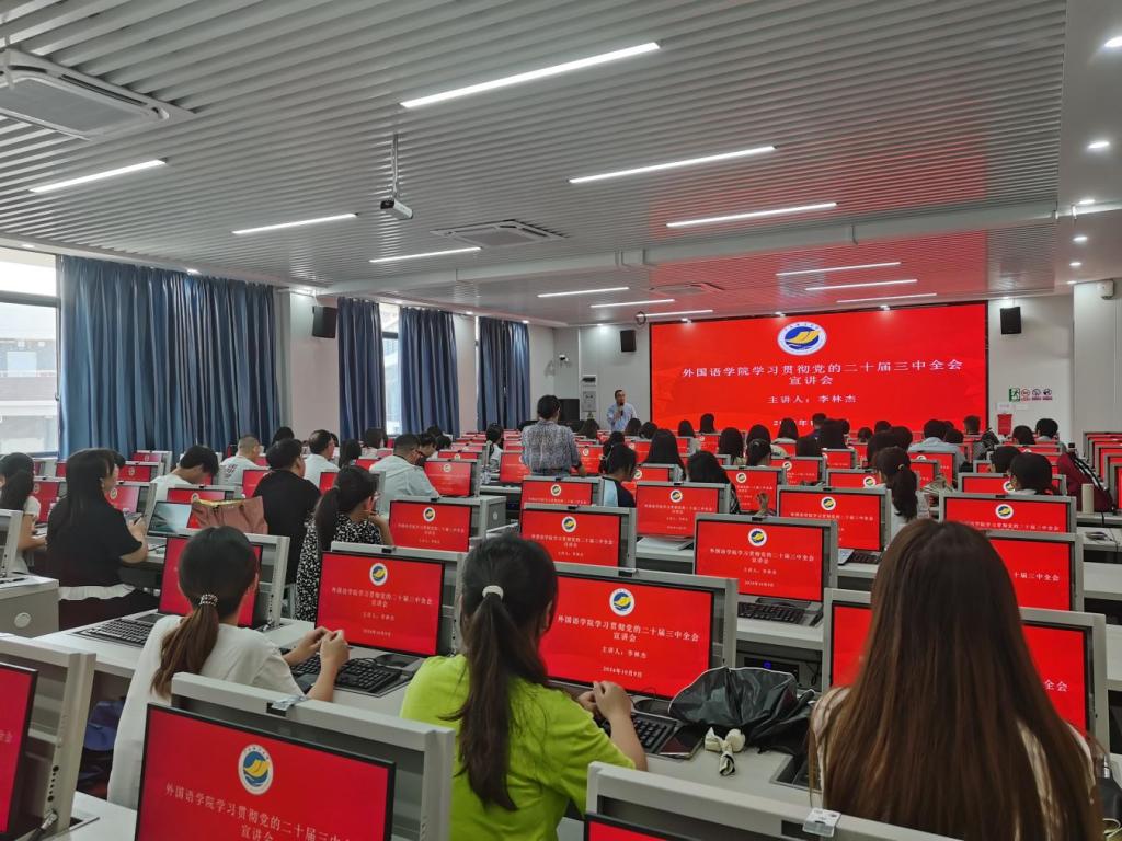 为进一步加强思想政治教育,不断凝聚奋进之力,10月9日下午,太阳集团122cc在湖光校区文科楼2号楼704室召开学习贯彻党的二十届三中全会精神宣讲报告会。报告会由公司党委理论宣讲团成员李林杰副教授主讲,全体教工党员、副科级以上干部、员工党员、入党积极分子近百人参加了宣讲会,会议由公司党委书记刘艳主持。