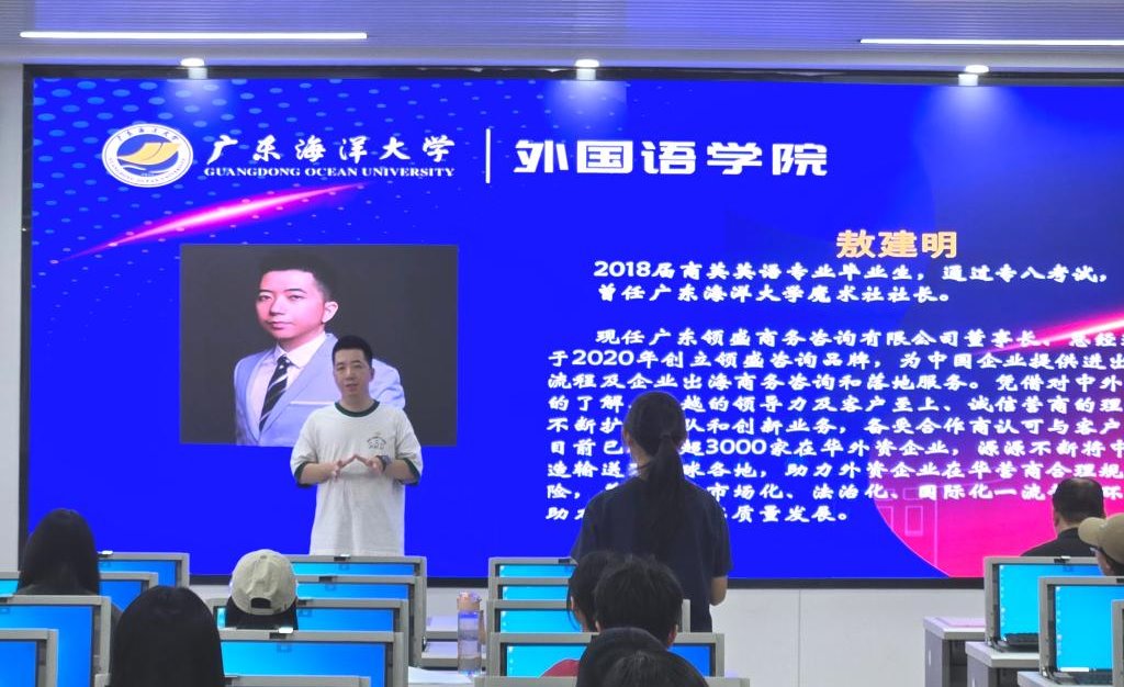 分享会上,广东领盛咨询公司董事长、总经理敖建明讲述了自己毕业工作两年后毅然选择创业的经历。他鼓励同学们要敢闯敢拼,勇于尝试,在一次次挑战中积累经验,最终实现自我价值。随后,星图国际海外销售经理陈田翠分享了自己毕业后在同一公司踏实工作8年的成长历程,用自己的亲身经历告诉师弟师妹们,要脚踏实地,在工作中不断学习进步。