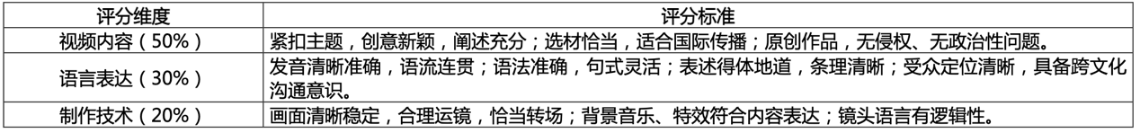 参赛选手须围绕本年度比赛主题“美丽中国”制作原创短视频,视频时长3~5分钟,须配中英双语字幕。视频须命名为:公司全称+选手或队长姓名+手机号码。视频作品分辨率为1280*720或以上,接受AVI、MOV、WMV或MP4格式文件,大小不超过500MB。参赛作品须为个人或团队创作的原创作品且未曾公开发表,确保作品版权明晰无争议,包括但不限于创意、画面、配乐、音效、特效、字体版权及肖像授权等。如视频作品因肖像权、名誉权、隐私权、著作权、商标权等引发纠纷,一切法律责任及后果由参赛选手承担,组委会保留取消其参赛资格及所获奖项的权利。作品须符合国家法律法规要求,内容积极向上,传播社会正能量。作品旁白须为团队成员配音的英语音频(不可使用人工智能语音、剪辑软件字幕配音等)。