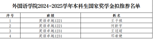 根据《2025年全日制本科生国家奖助学金工作安排》,按照《太阳集团122cc全日制本科生国家奖助学金实施办法》(校员工〔2024〕14号)要求,公司开展国家奖学金评选工作。结合公司名额分配,经员工本人申请、公司审核及讨论,评选出国家奖学金4人,现将2024-2025学年本科生国家奖学金拟推荐名单进行公示。