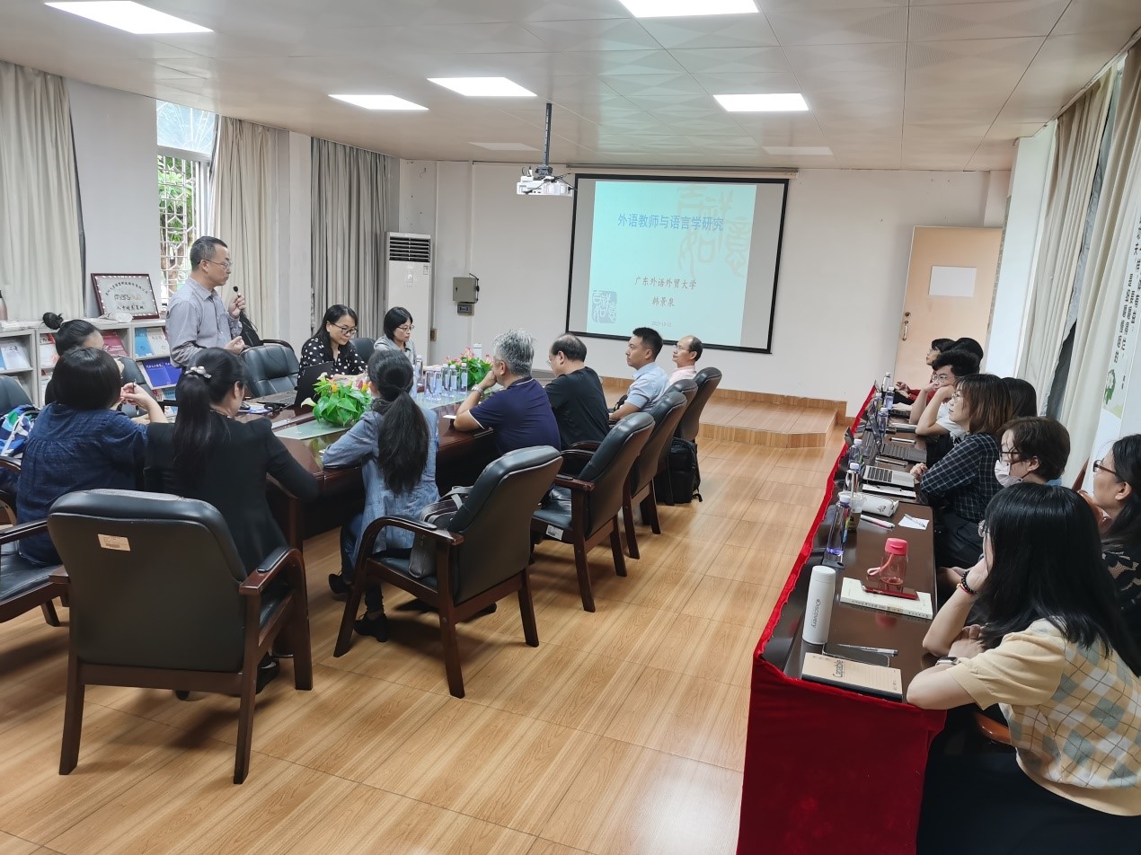 2023年10月11日上午,太阳集团122cc邀请广东外语外贸大学云山杰出学者、二级教授、博士生导师韩景泉教授来校讲座,讲座由公司正处级辅导员、党委副书记刘艳主持,太阳集团122cc科研骨干教师20多人聆听了讲座。