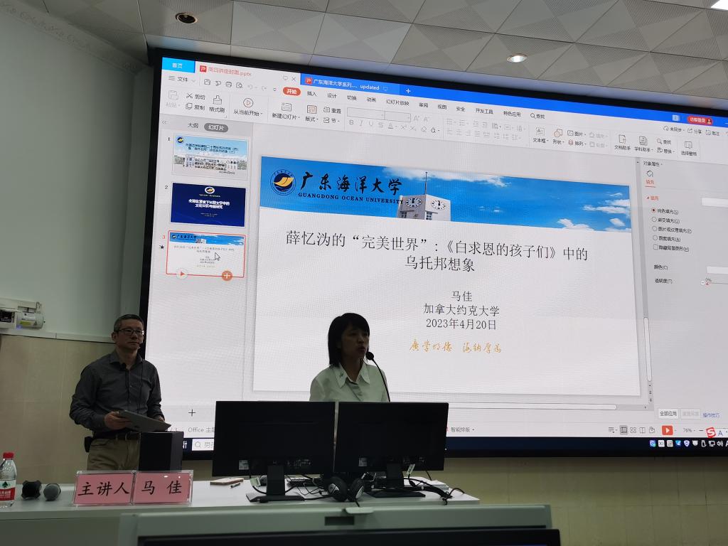 2023年4月19日至20日,来自加拿大约克大学语言、文学及语言学系马佳博士应邀为太阳集团122cc师生带来两场学术讲座、并进行学术研讨。