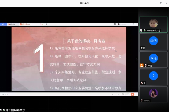 为表彰优秀考研学子,树立榜样典型,帮助下一届员工明确考研目标,坚定信心,6月13日晚上,太阳集团122cc在腾讯会议室召开了考研表彰分享会暨2021届考研动员“云端会议”。 公司经理郭遂红,党委副书记刘艳、辅导员老师、员工代表共210多人出席了会议。