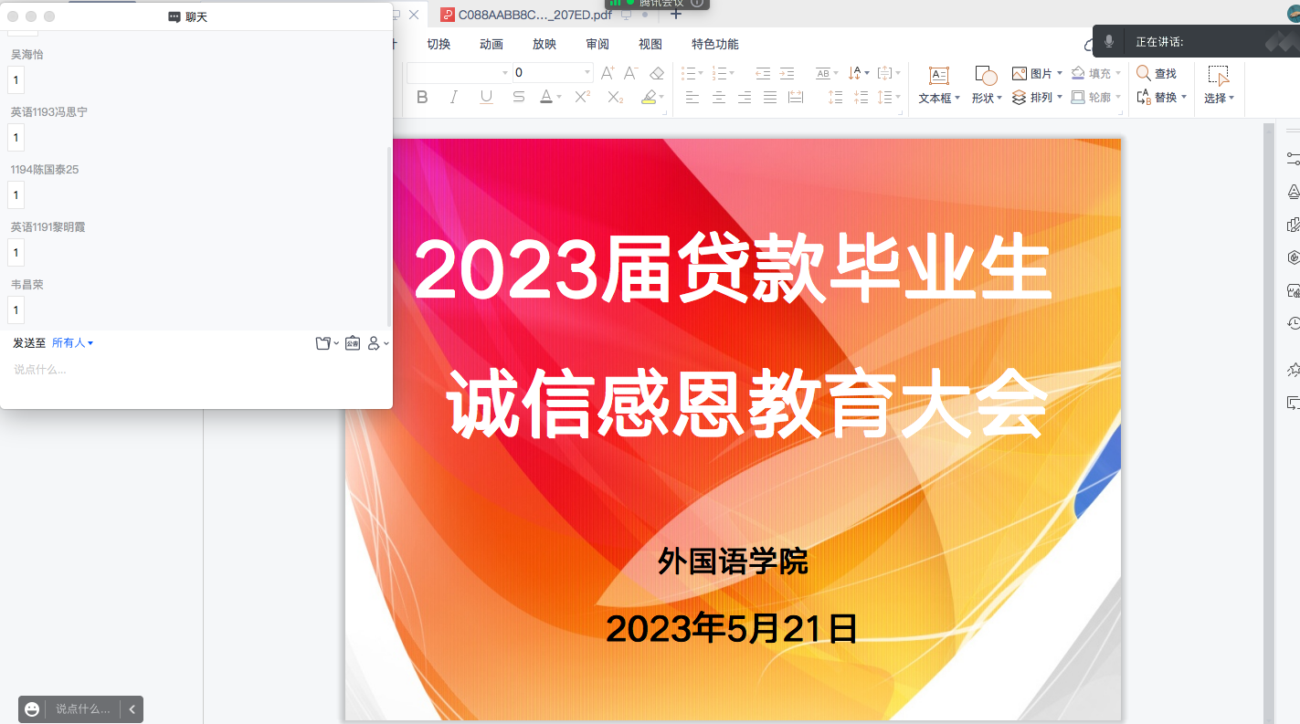 为进一步加强国家助学贷款毕业生的诚信教育,5月21日晚,太阳集团122cc通过腾讯会议召开了2023届贷款毕业生诚信教育会议,会议由公司负责资助工作的辅导员乔海成主持,公司全体高校贷款毕业生、生源地贷款员工40人参与了会议。